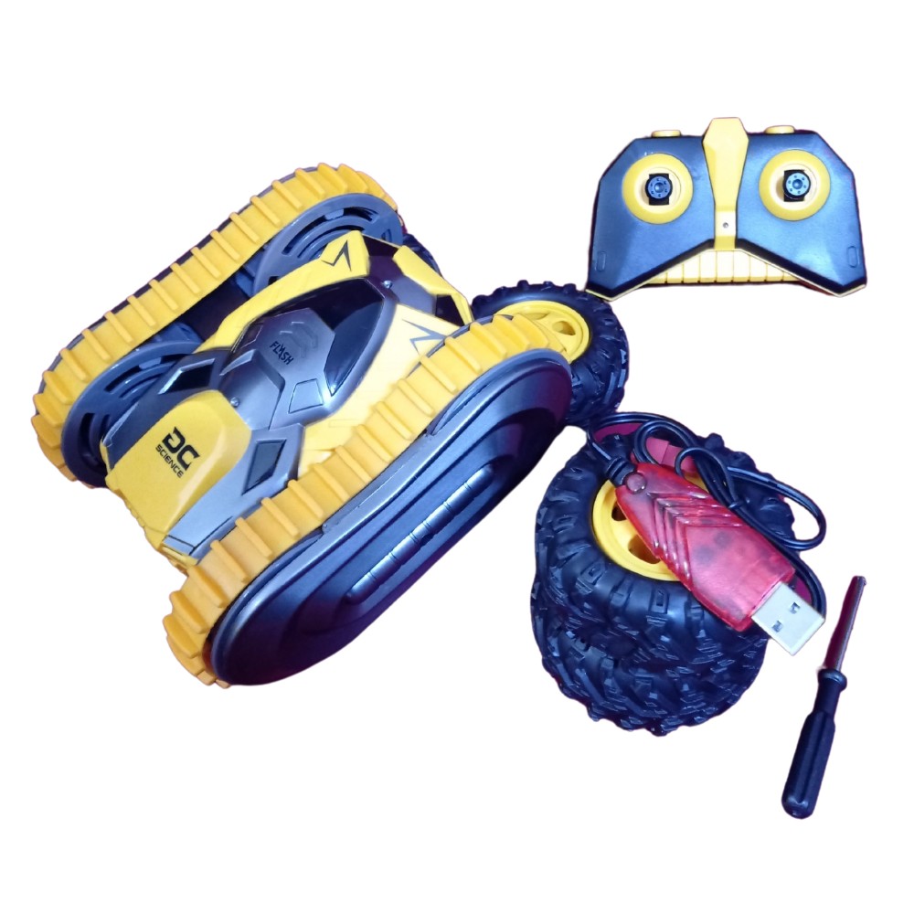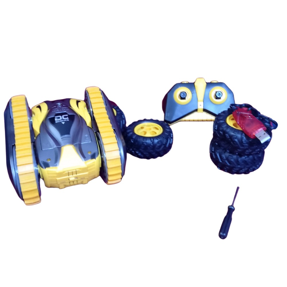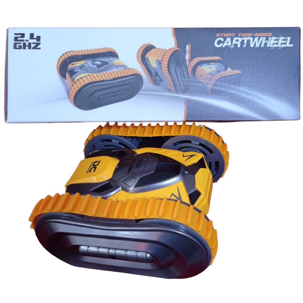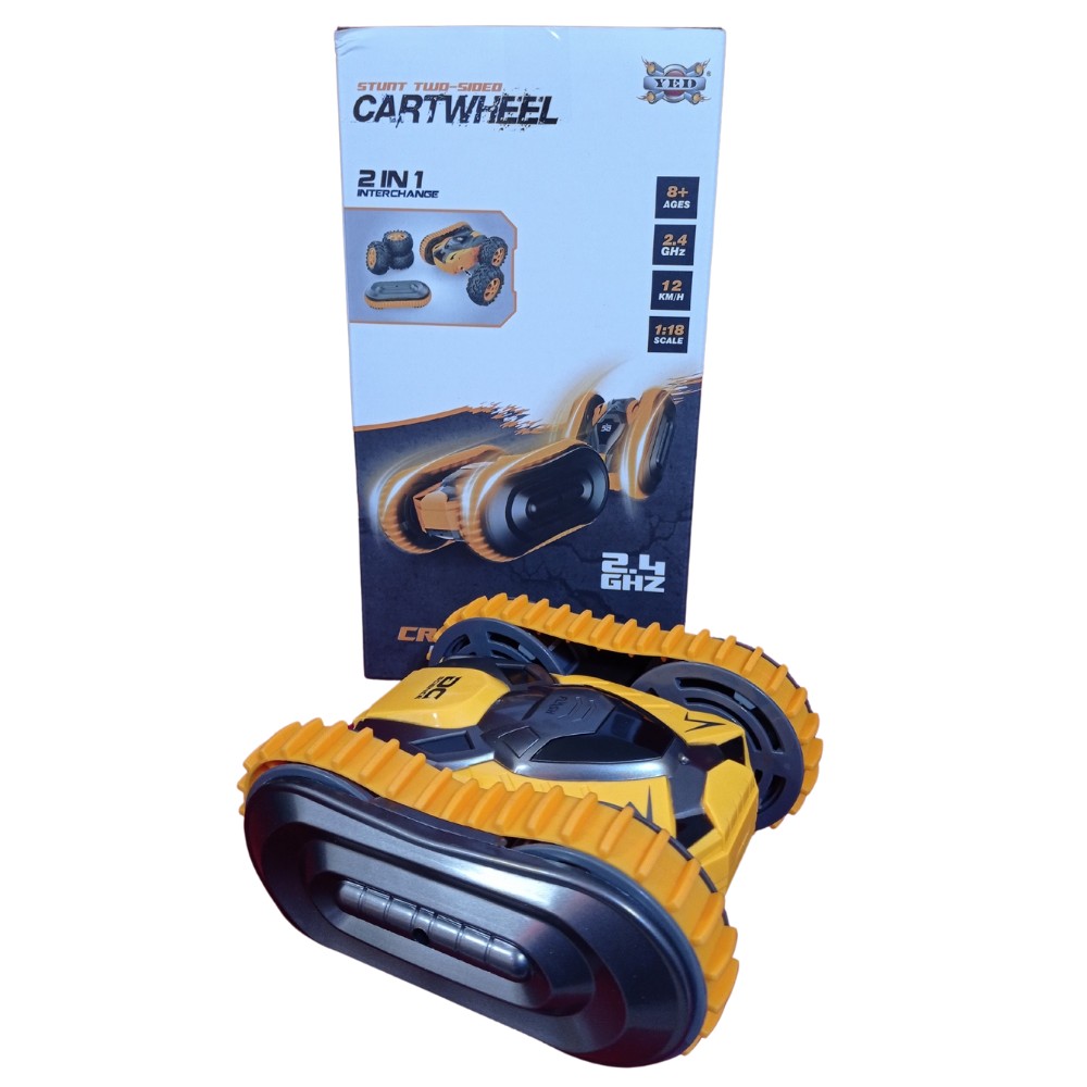 Cserélj kereket, tedd fel a lánctalpakat és játssz az átfordulós autóval nehéz terepen. Tedd vissza a kerekeket, hiszen csak néhány mozdulat, és játszhatsz a szobában is vele. Trükközz, mutatsd meg, mennyire ügyesen irányítod ezt a fantasztikus járművet.