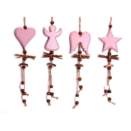 Akasztós Dísz Csillag-Angyal Fa 32X7,5Cm Rózsaszín