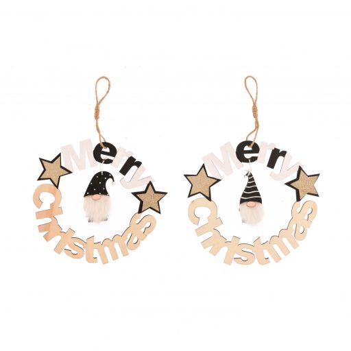 Akasztós dísz manóval, "Merry christmas" felirattal 20cm