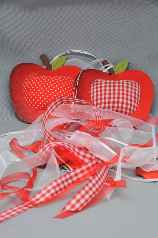 Alma Ajtódísz Akasztós Fa-Textil 75Cm Piros-Fehér 2 Féle