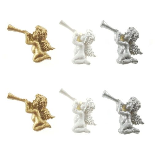 Dekorációs Karácsonyi Figura, Angyal Öntapadós Poly 2,8X3,6X1 Cm Fehér,Arany Ezüst S/6