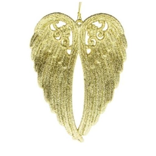 Angyalszárny formájú karácsonyfadísz arany színben.
