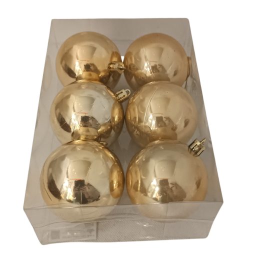 Arany karácsonyi gömb műanyag, 6cm 6db/csomag