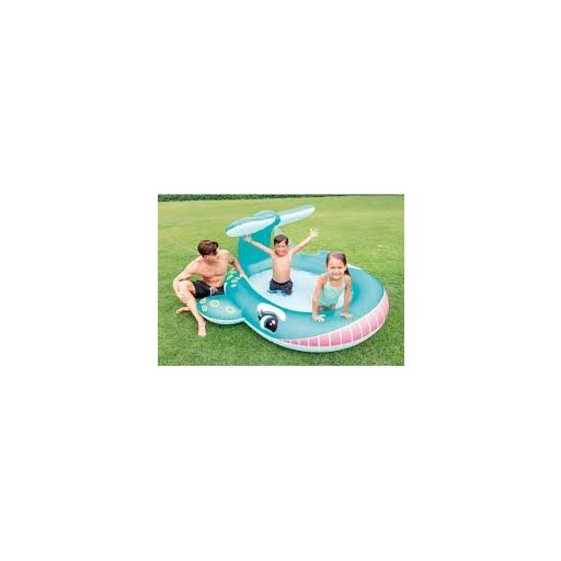 A bálnás medence külön élményt nyújt a gyerekek részére, mivel ha a locsoló tömlőt rácsatlakoztatjuk a medencére akkor a bálna farkából elkezd spriccelni a víz.