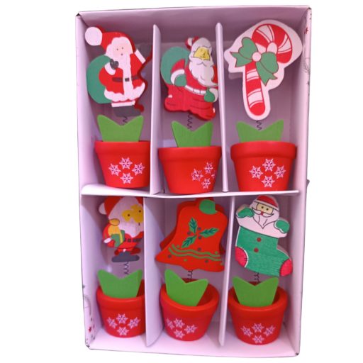 Csiptetős mikulás dísz cserépben. Mérete: 11x 4cm.