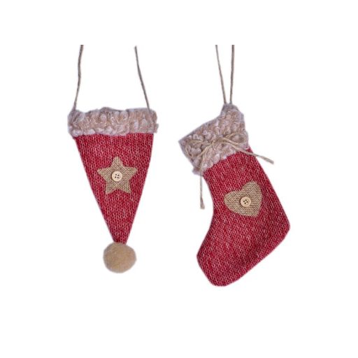 Csizma-Sapka Akasztós Textil 13Cm Piros 2Féle