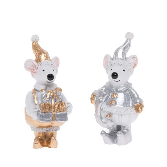 Egér Álló Poly 6,6X3,3X2,4Cm Fehér,Ezüst Arany