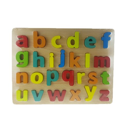 A nagyméretű fakeretben az ABC betűit formázó kirakó darabokat találsz. Csak ki kell szedni a betűket a keretből és a gyermek máris megkeresheti melyik betű hova való.
