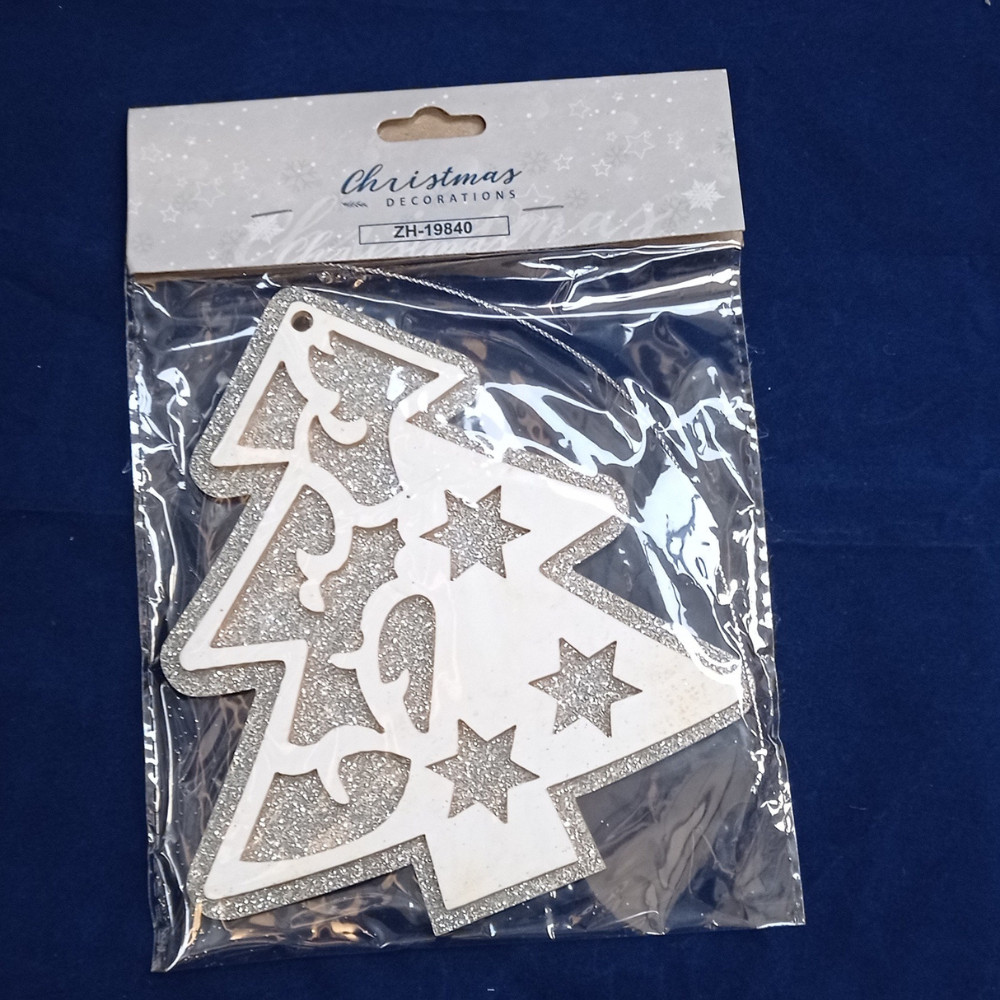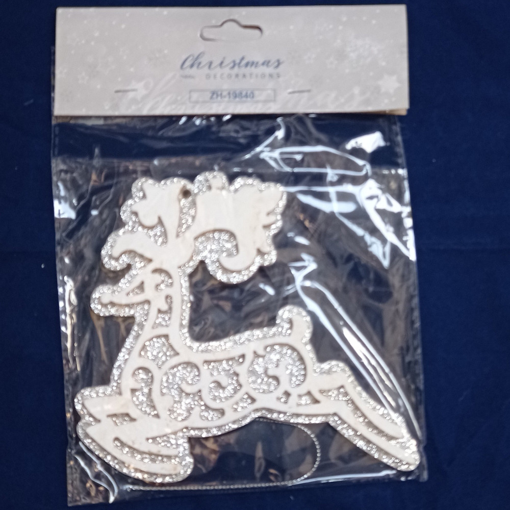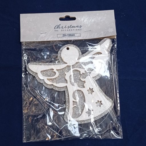 Fa akasztós dísz fenyő-rén-angyal 15cm fehér-ezüst