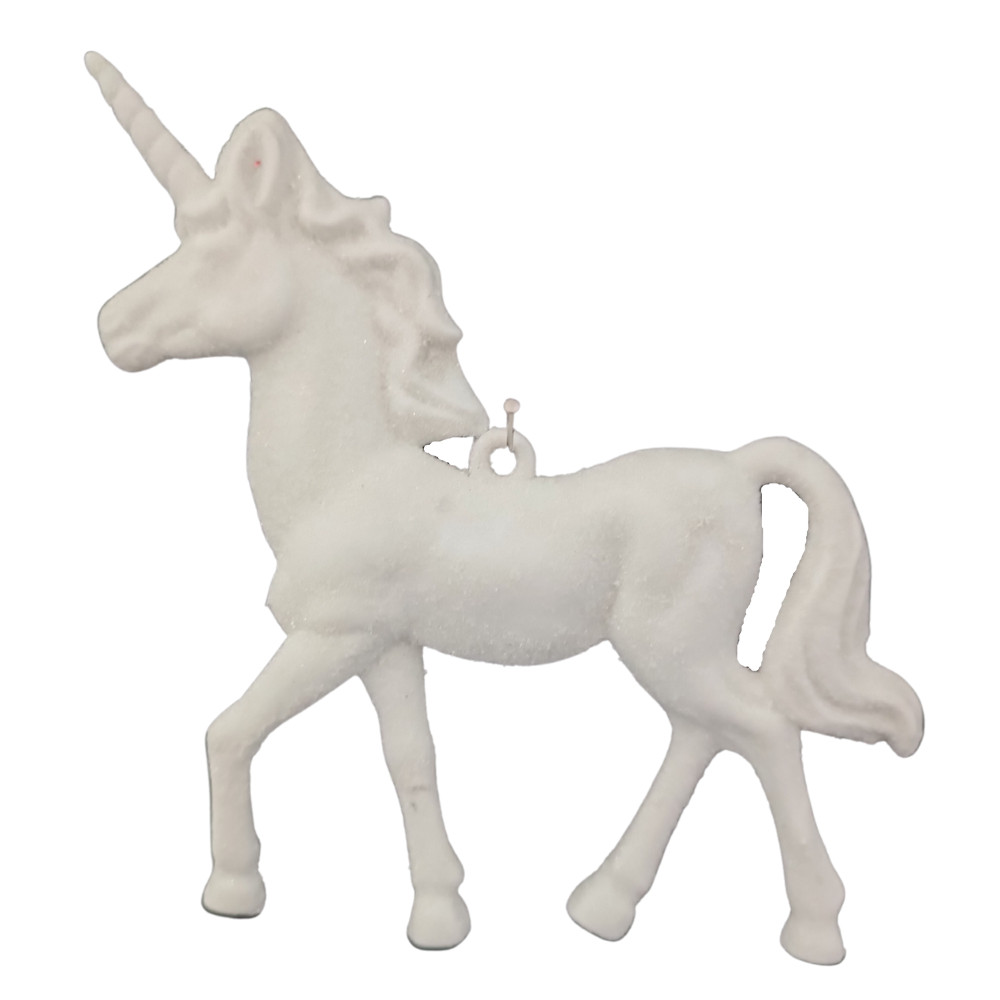 Unikornis karácsonyfa dísz, fehér színben. A csomag 2db unikornist tartalmaz.