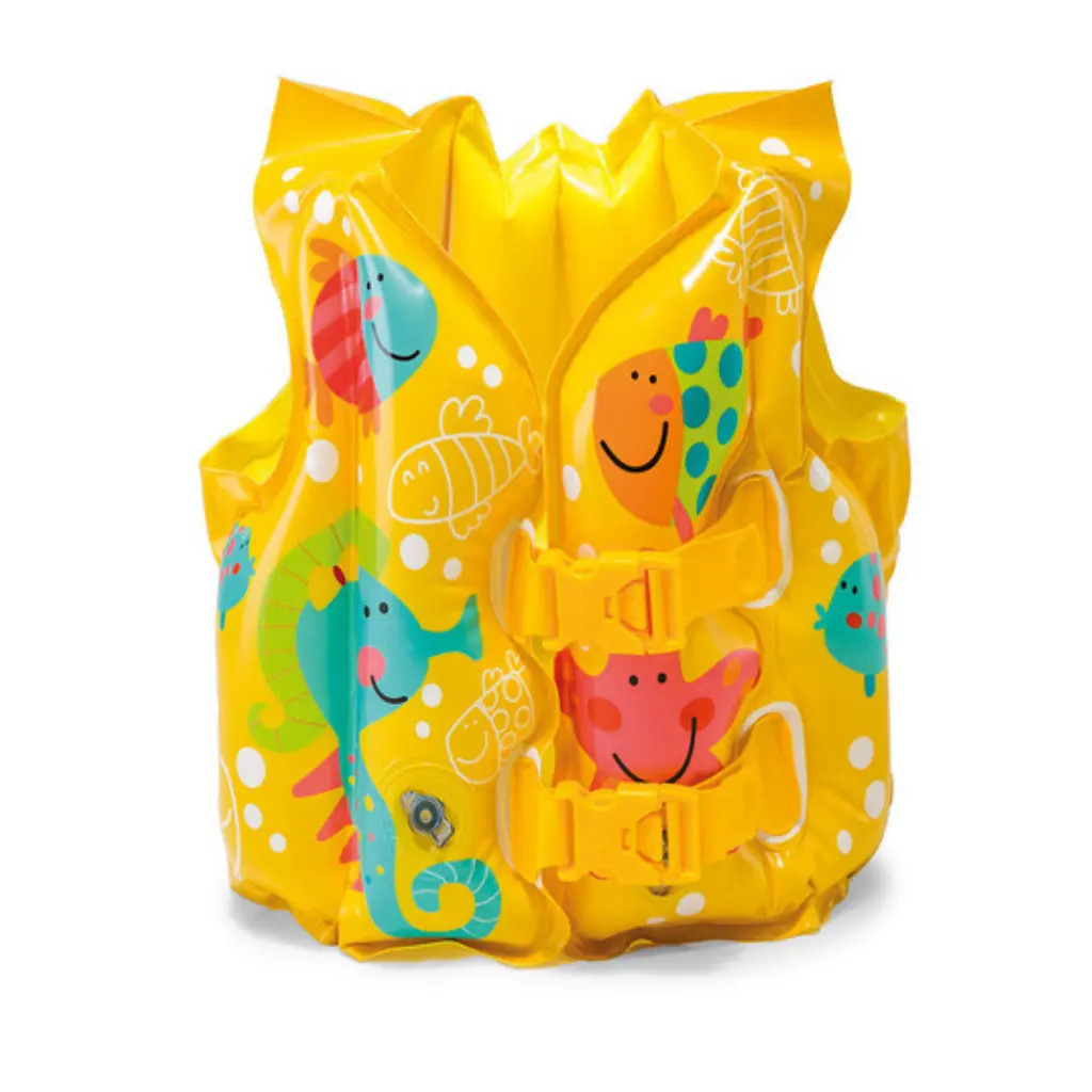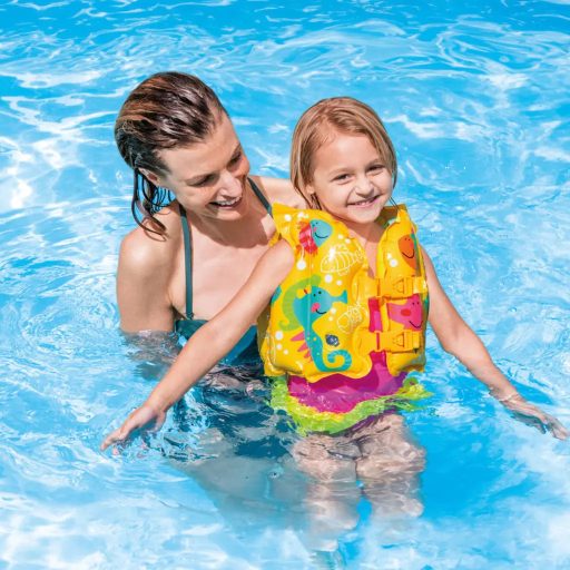Az úszni tanuló kisgyermekek imádni fogják a Tropical Buddies úszómellény színes, tengeri élőlényeket ábrázoló dizájnját. Három légkamrával és két gyorskioldós csattal ellátott, vidám mellény ideális biztonsági mellény 3-5 éves gyermekek számára.