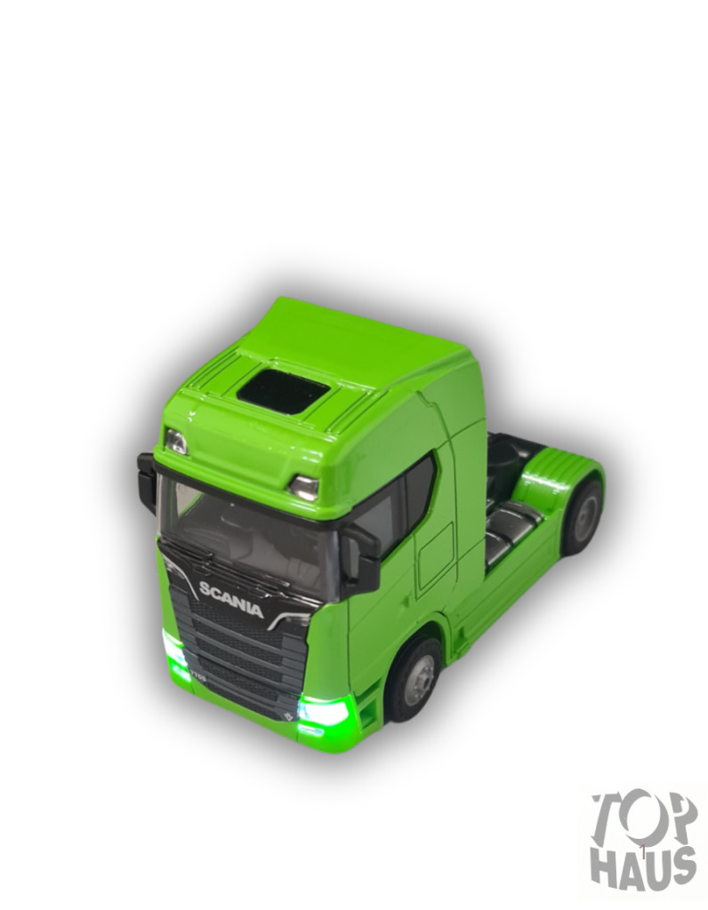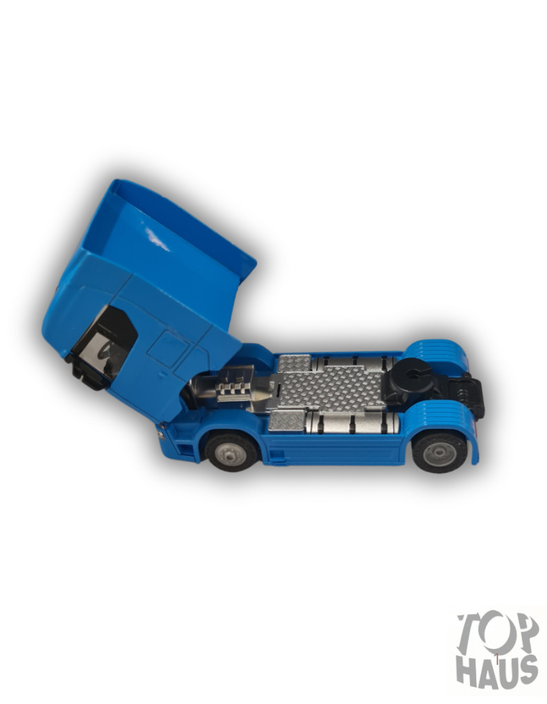 A kamion nem csak hangot ad és villog, de a fölke része még billenthető is.
