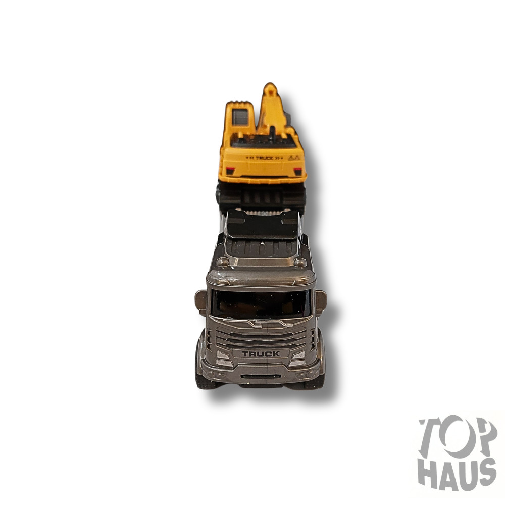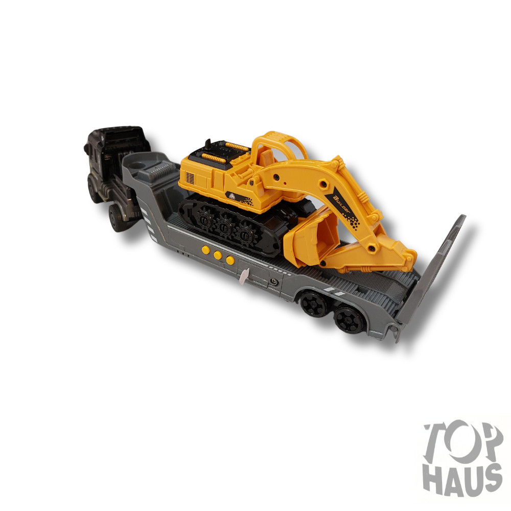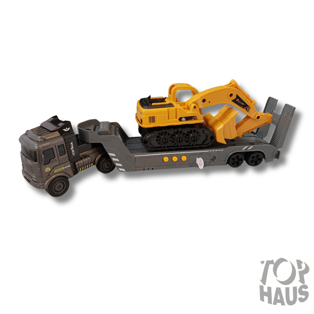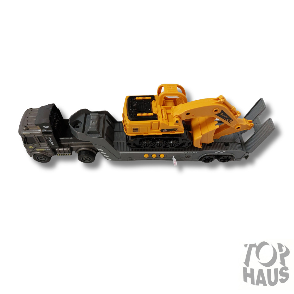 Indulhat az építkezés ezzel a látványos kamionos játékszettel! A hosszú trélerrel felszerelt kamion egy markolót szállít, így a gyerekek valósághű szállítási és építési jeleneteket játszhatnak el.