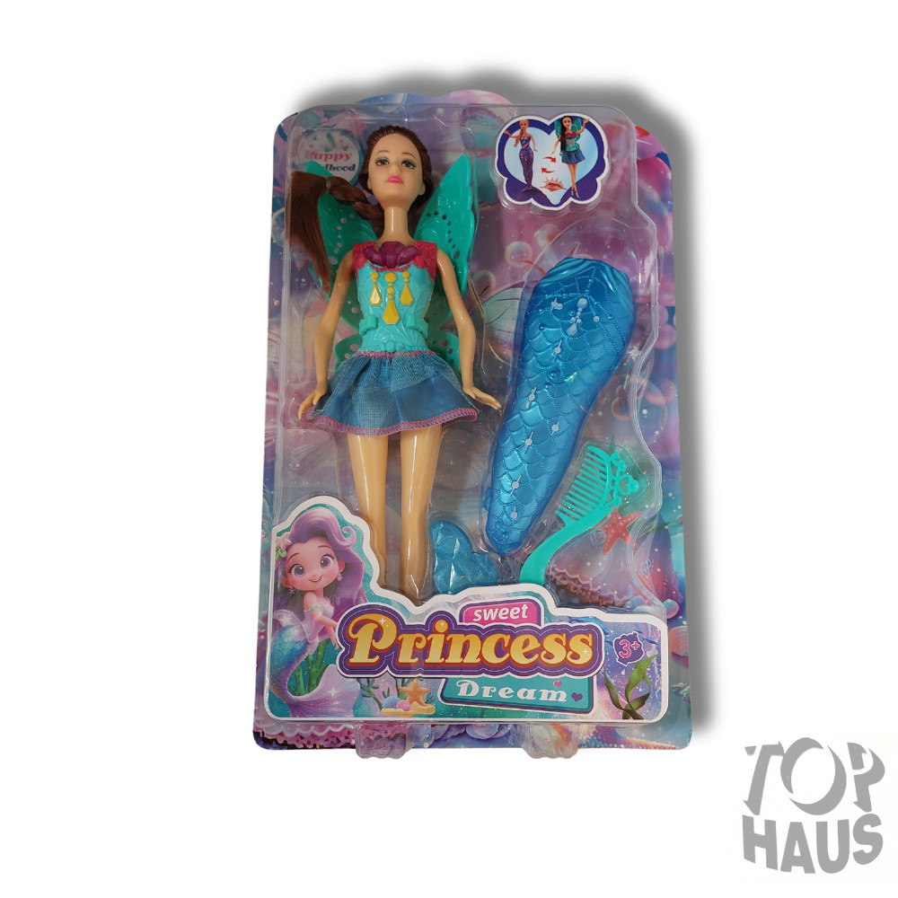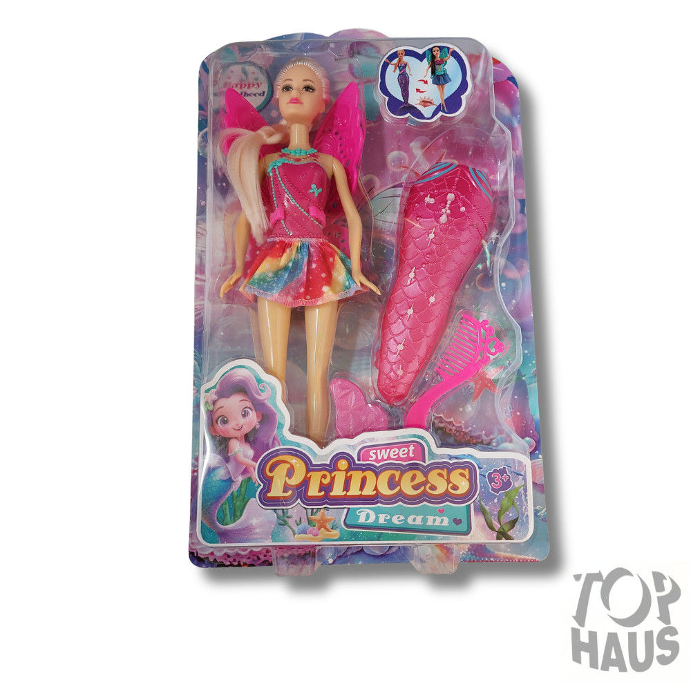 A baba 30cm hosszú több ruhája van és képes átalakuni sellővé