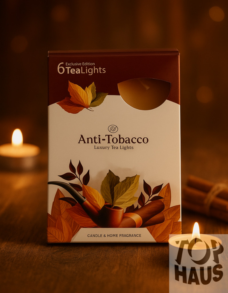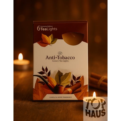 Az Anti-Tobacco Luxury Tea Lights különleges formulája hatékonyan elnyomja a dohányfüst kellemetlen szagát, miközben meleg, harmonikus illatot áraszt. Tökéletes választás nappalikba, dohányzószobákba vagy irodákba.