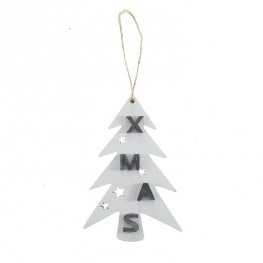 Fenyőfa 12X7X0,6 Cm S/7 Akasztós Fehér Szürke