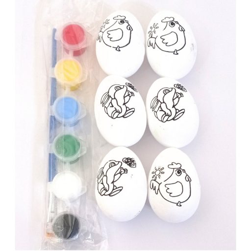 A gyerekek lelkesen készülhetnek a Húsvéti ünnepekre ezzel az aranyos festhető tojással. Kétféle mintával 3-3 db tojást tudnak a mellékelt ecsettel és a 6 darabos festékkel kifesteni.