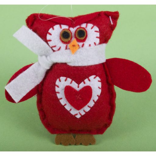 Filc Bagoly Sállal Piros-Fehér 11Cm