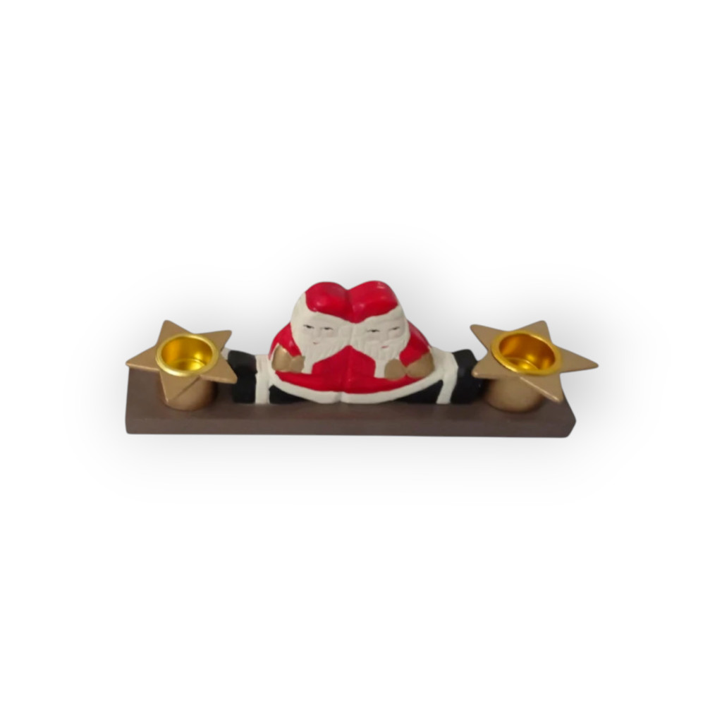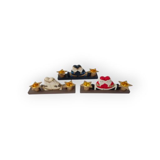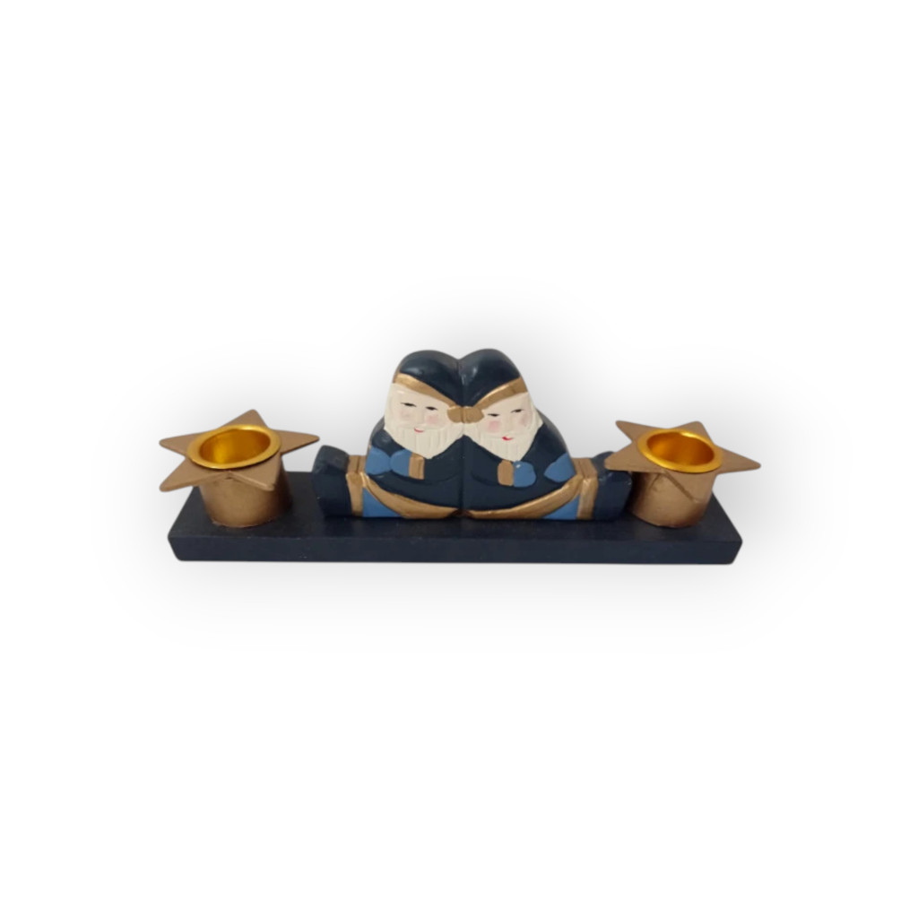 Ünnepi 2 gyertyás gyertyatartó, fából.