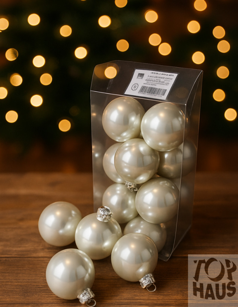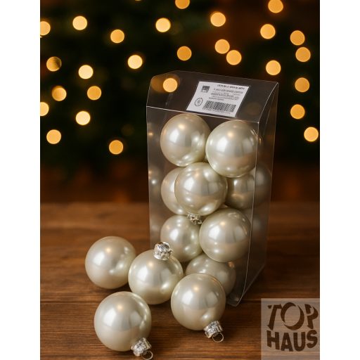 Gyöngyházfényű üveg gömb karácsonyfa dísz 4cm, 12 db /csomag.