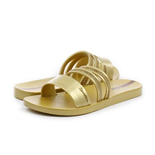 Csinos Ipanema New Glam női papucs bebújós fazonban. Két vékonyabb pántját csillogós kövek díszítik. Divatos, nemesfém jellegű színekben kapható. A szokásosnál egy mérettel nagyobb terméket ajánlott választani!