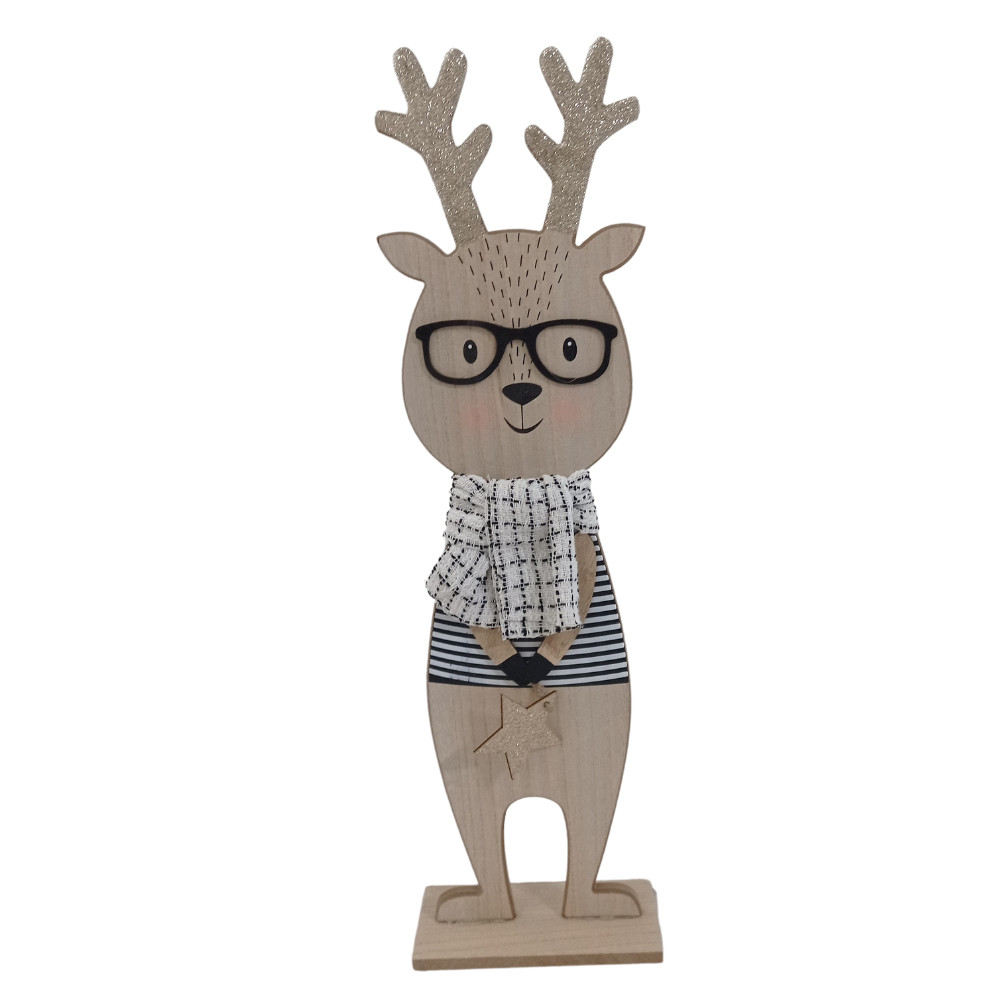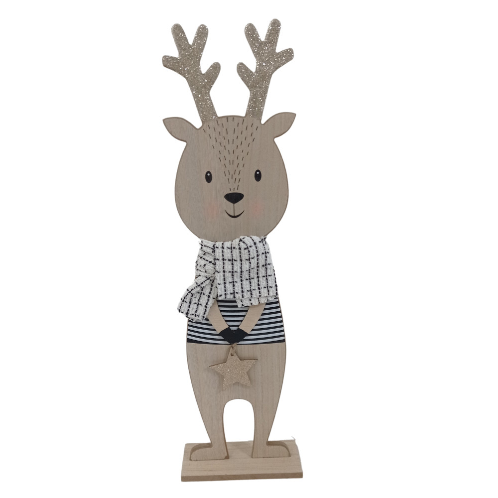 Karácsonyi dekor, rénszarvas fatalpon 58cm