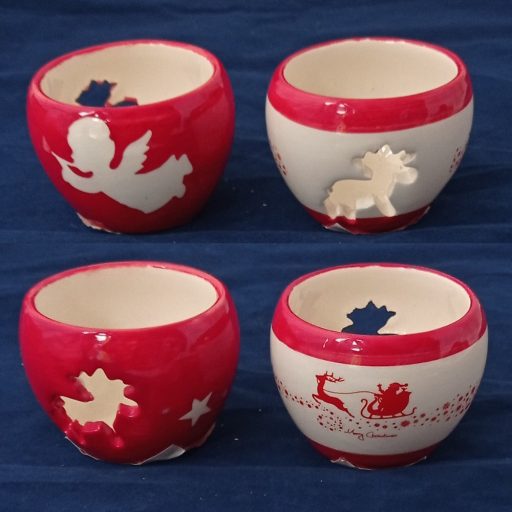 Kerámia mécsestartó mikulás-angyal gömb 6cm piros-fehér
