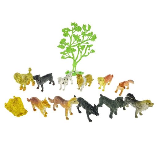 Műanyag kutyafigurák, különböző fajták egy csomagban.