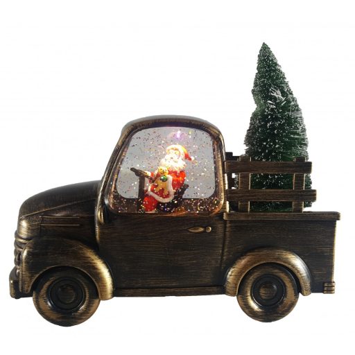 Lámpás Autó Fenyőfával Télapóval Bronz