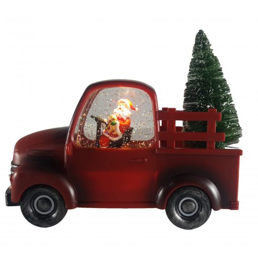 Lámpás Autó Fenyőfával Télapóval Piros