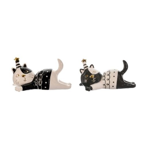 A fekvő macska figura remekül alkalmazkodik a lakás stílusához, segít a közelgő ünnepi hangulat megteremtésében. Kedvelt, elegáns karácsonyi dekoráció.