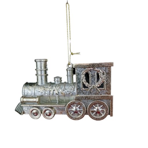 Pezsgő színű mozdony karácsonyi akasztós dísz, plasztik.