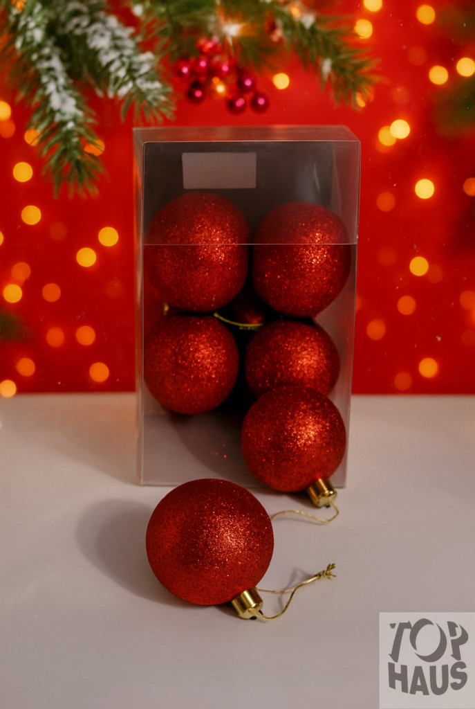 Hogy szebbé tegyük a karácsonyt egy szép piros glitteres gömbbel a karácsonyfán.