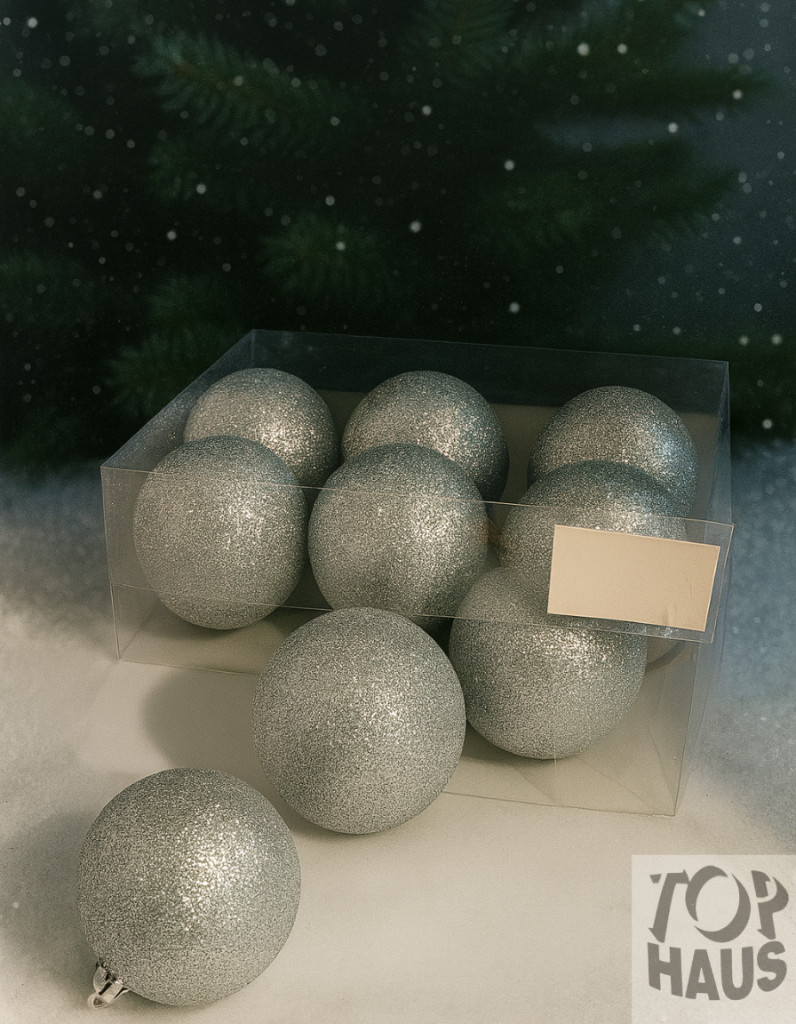 Hogy szebbé tegyük a karácsonyt egy szép nagy ezüst glitteres gömbbel a karácsonyfán.