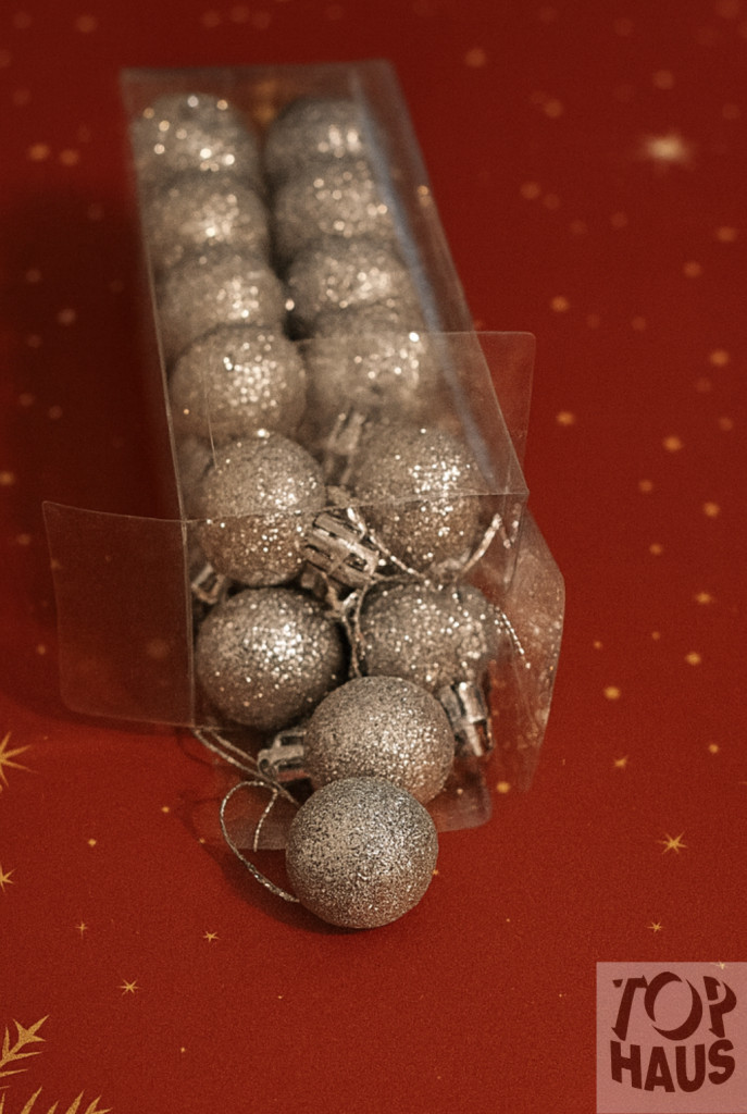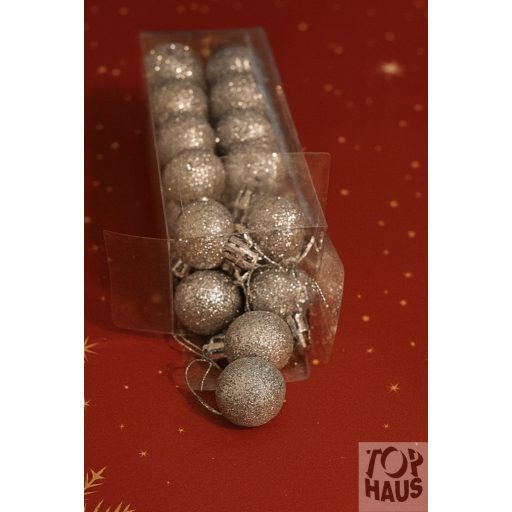 Műanyag gömb dobozban ezüst glitteres 3 cm