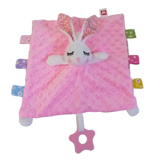 A plüss anyagból készült puha nyálkendő tökéletes nedvszívó hatású, a picik örömmel szorongatják a cuki mosolygó nyuszit. A rágókával masszírozni tudják az ínyüket, a pici fogacskák könnyebben bújhatnak ki, a fogzással járó kellemetlen érzés pedig enyhül.