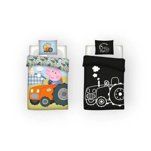 Peppa Pig, Peppa malac  traktorral Sötétben világító ágyneműhuzat 100x135cm, 40x60cm