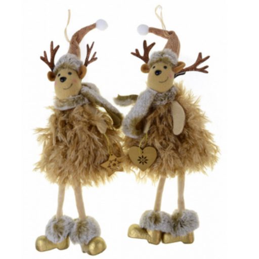 Szarvas figura, plüss 42 cm lógólábú, akasztós, barna