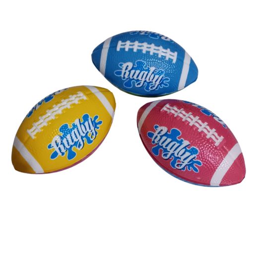 PU rögby labda. Könnyű anyagának köszönhetően nem kell sérülésektől tartani. Strandon is használható.