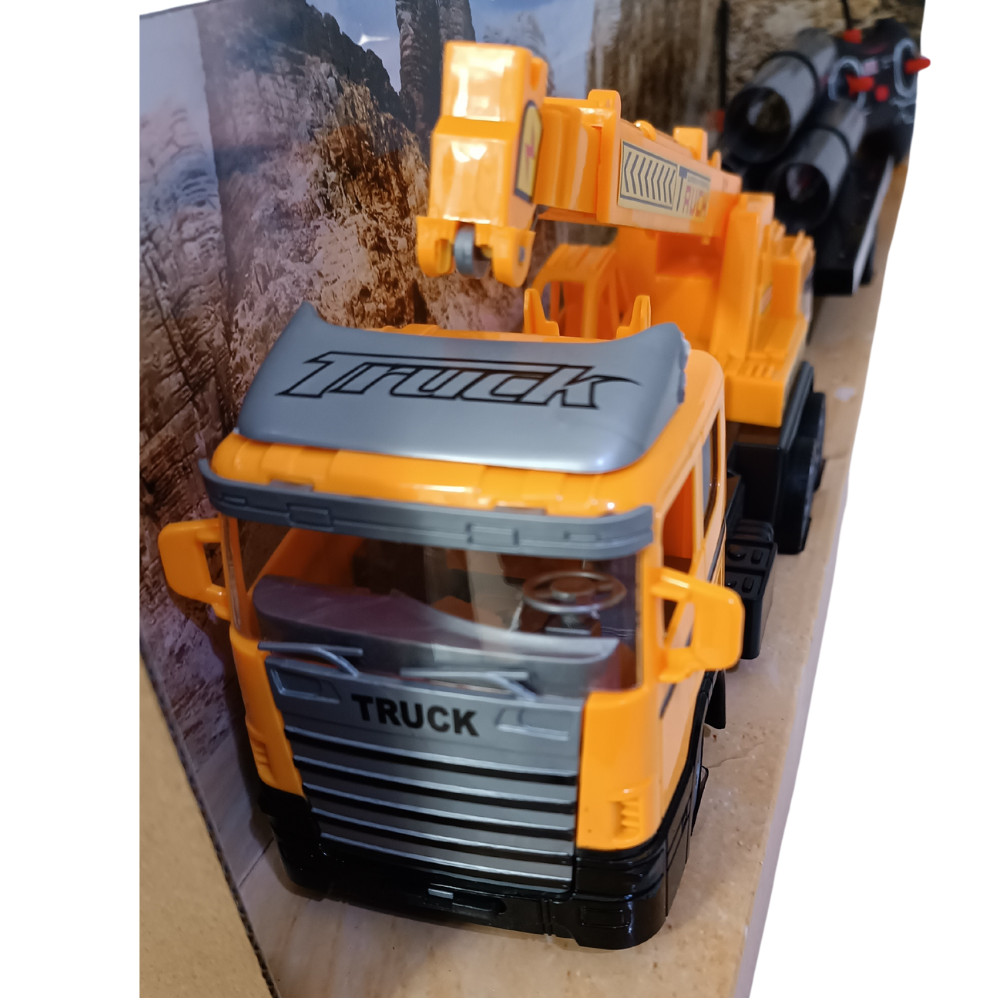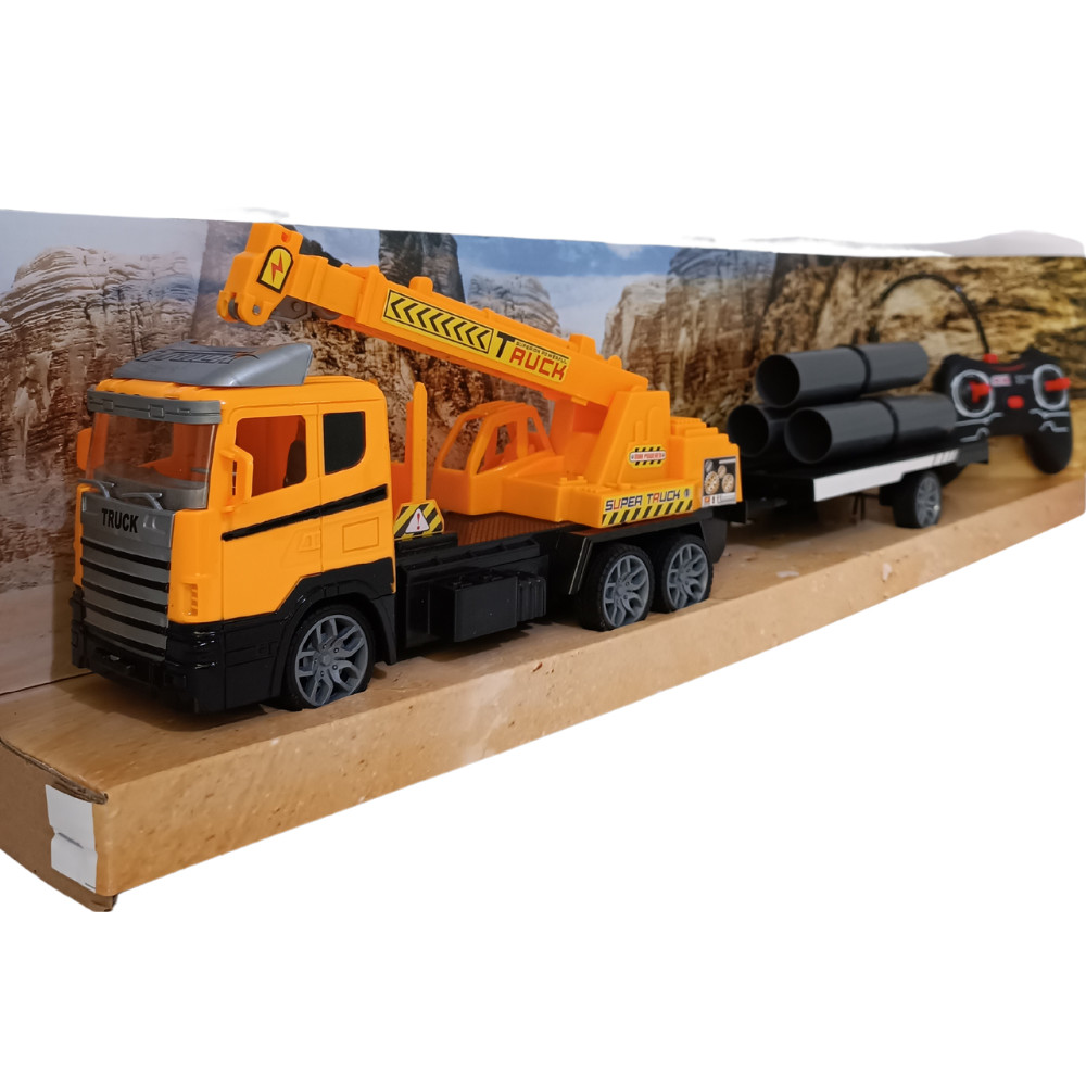 Távirányítós darus autó, utánfutóval.