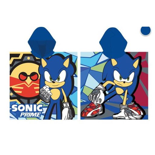 Sonic poncsó gyorsan száradó anyagból gyerekeknek. Tökéletes választás a strandra. A poncsó mérete: 55 cm x 110 cm