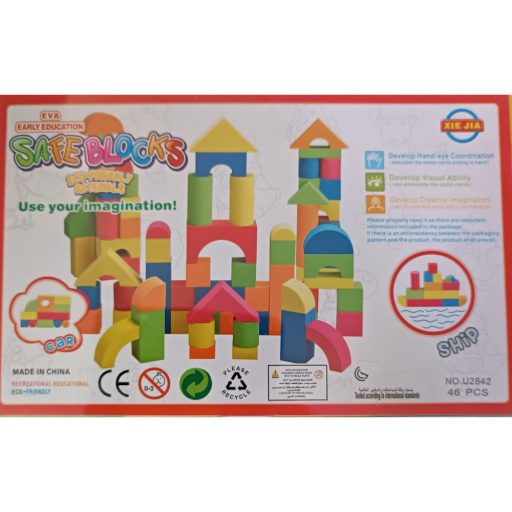EVA színes építkocka. Puha anyagból készül. Nincs sérülésveszély.