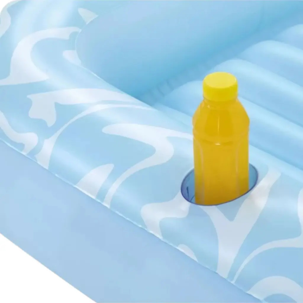 A kényelmes fejtámlával és beépített párnával ellátott matrac kényelmes pozíciót biztosít a napozáshoz, olvasáshoz vagy egyszerűen csak a medencében vagy tóban való lebegéshez. A széles fekvőfelületnek köszönhetően kényelmesen elfér rajta, a masszív fogantyúk pedig megkönnyítik a mozgatást vagy a matrac használat utáni szállítását.