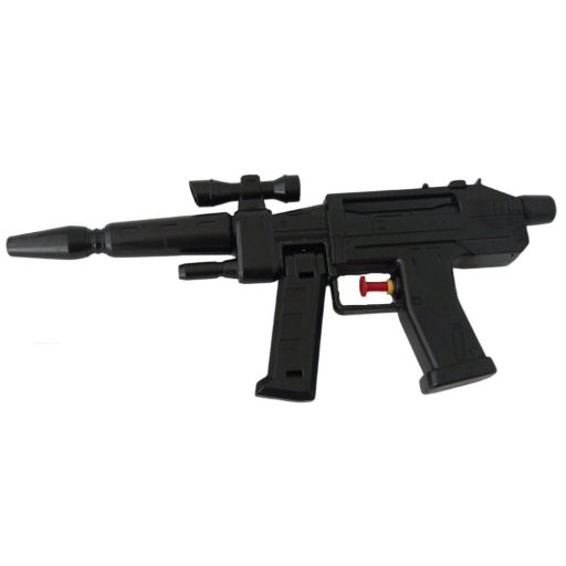 A fekete vízipisztoly egy műanyagból készült, közepes méretű vízifegyver, amivel lehűlést tudsz hozni a forró nyári napokon.